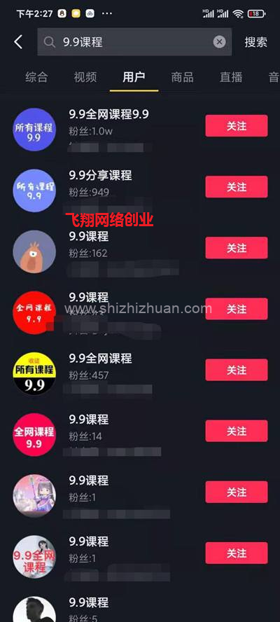 大家好,我是飞翔!今天分享的项目是关于9.9元课程的,最近9.9元全网课程比较火,有人通过抖音,一天引流300精准粉,按照百分之10的变现概率,一天也能赚300块钱,而且账号多的话,进行矩阵操作,效果更好。