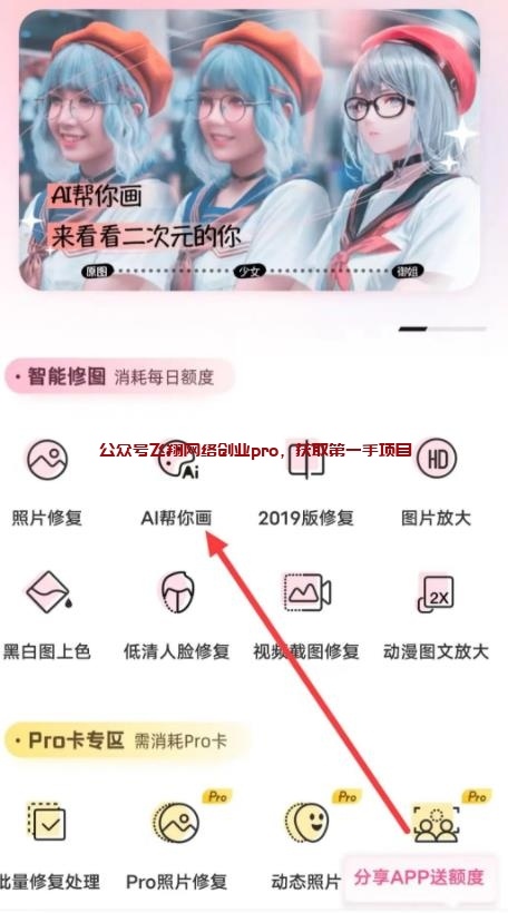 只需要下载一个AI修图app,选择AI帮你画,如何导入素材照片,再选择我们要的效果就可以