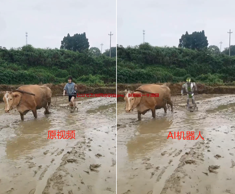 我们看对比,原视频是一个美女耕田,对于原视频本身就有非常大的流量,因为美女耕田本身就有吐槽点,就容易引爆流量。