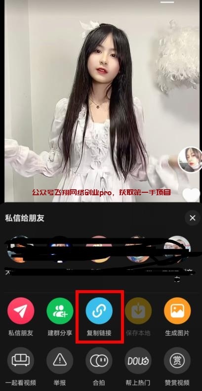 具体操作就是,我们先找到素材视频,然后点击视频右下角箭头,复制链接