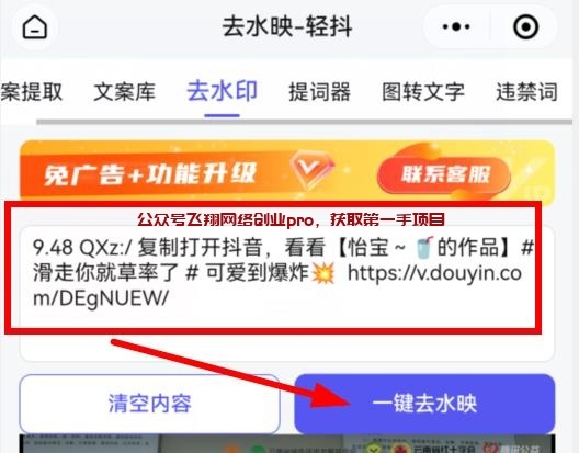 然后去微信搜索:轻抖小程序,点去水印,把链接粘贴进去,导出就可以了