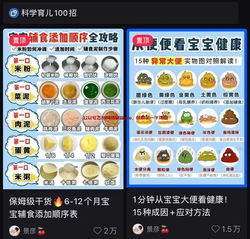 育儿,产后等一系列的项目可以作为知识付费的服务变现,这里就包括了宝宝的健康,辅食类的产品,所以其实这个是一个大类目,里面的很多细分都是可以独立出来作为一个单独项目分支去做的。