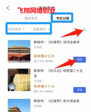3、专栏添加可以选择我的专栏和专栏分销中的专栏。