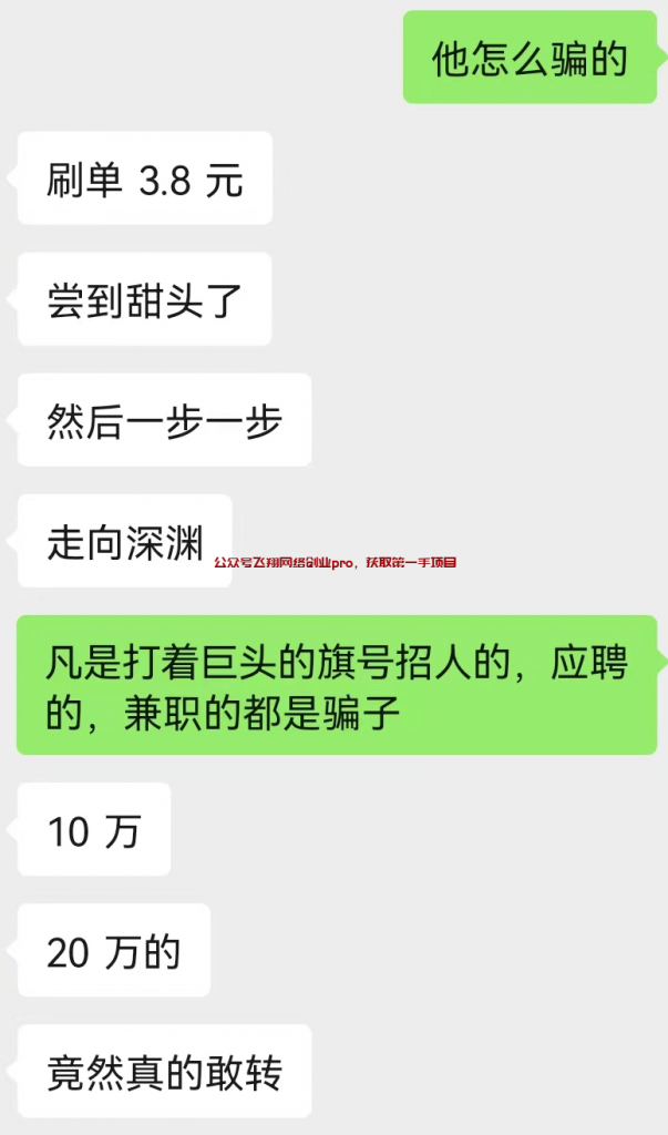 大家好,我是飞翔!前些天有个人加我微信,说要合作,给我广告费,让我帮忙发一段文案,我一看是找兼职的文案,说实话,这类文案骗子太多了