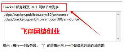 这里,“Tracker服务器和DHT网络节点列表” 是必须填写的。软件一般是默认有填写。