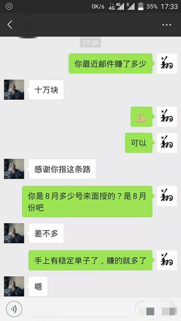 咨询过飞翔的朋友都知道,邮件赚钱主要分为几种模式,一个是做代发,目前价格一W封是500-700左右,成本100左右,利润400-600一单。(为什么会有代发这个行业存在,比如有些人做某个业务,需要邮件的这种方式,但是自己又没能力去发,所以只能找能发的人去发邮件)。之前朋友圈发的月收入过10W的学员,做的是这种。