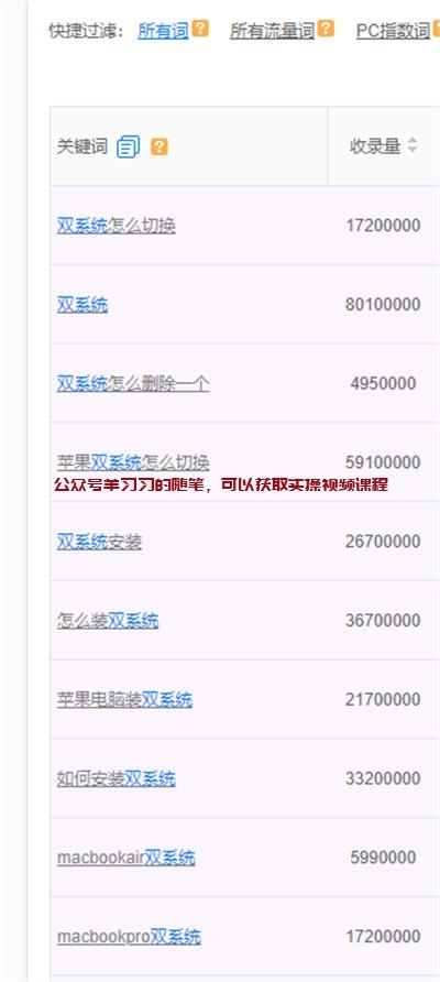 新手0经验的话,一开始可以在闲鱼,转转这类门槛低的电商平台上架业务,上架的产品一定要包含业务的关键词,还可以包含一些延伸的关键词,比如苹果电脑安装win系统,也叫做安装双系统