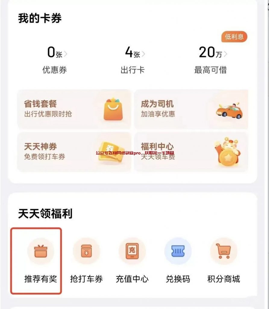 整体操作也不难,就是我们平时拉新app的那一套,下载滴滴后,右下角进入到我的会员中心,找到推荐有奖,生成专属的推广链接
