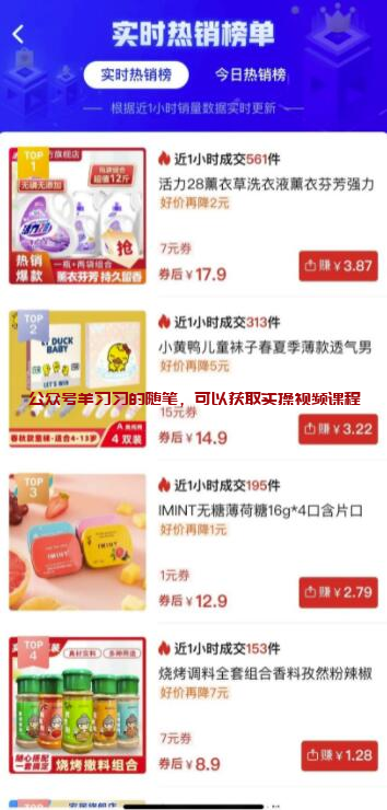 飞翔建议直接从爆款中选品,我们直接打开多多进宝,选择实时榜单