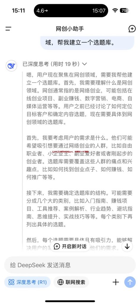 比如,我让DeepSeek帮我建立一个选题库。DeepSeek 最惊艳到我的是……
