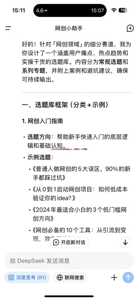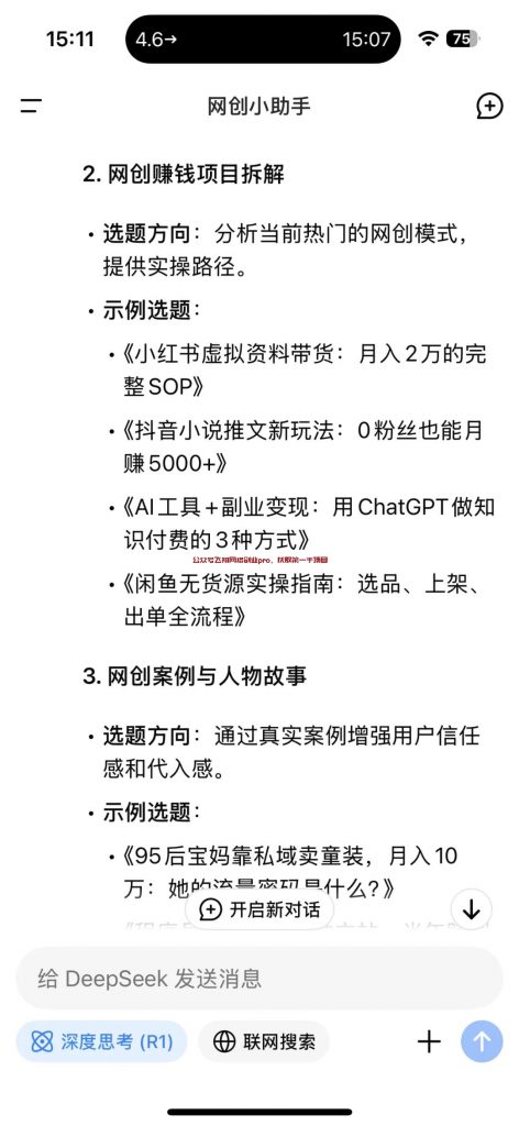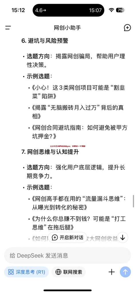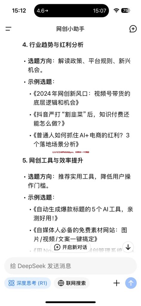 如果我还需要更仔细的方案我可以继续追问下去,让DeepSeek把每个分类给我提供更仔细的方案,甚至还可以让 DeepSeek给我爆款标题,继续追问让DeepSeek通过标题罗列内容框架……