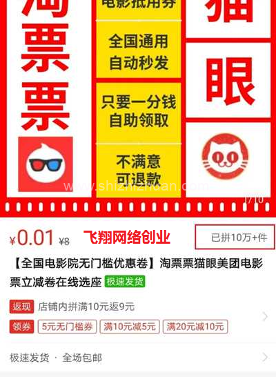 售价一分钱的电影票优惠券,30天销量超过10万件,这个一分钱优惠券就是套路。