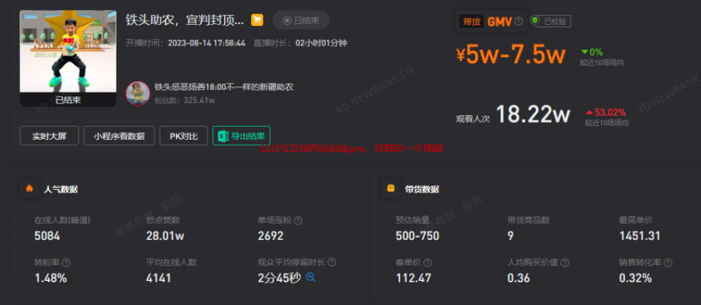 尽管铁头收到了很多负面评论,但他并不在意。他按计划进行了第一次带货直播