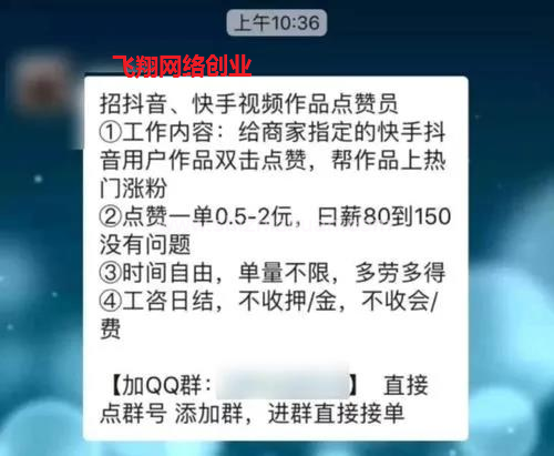 第一步:在各种微信群、QQ群看到抖音点赞赚钱的电子文案。