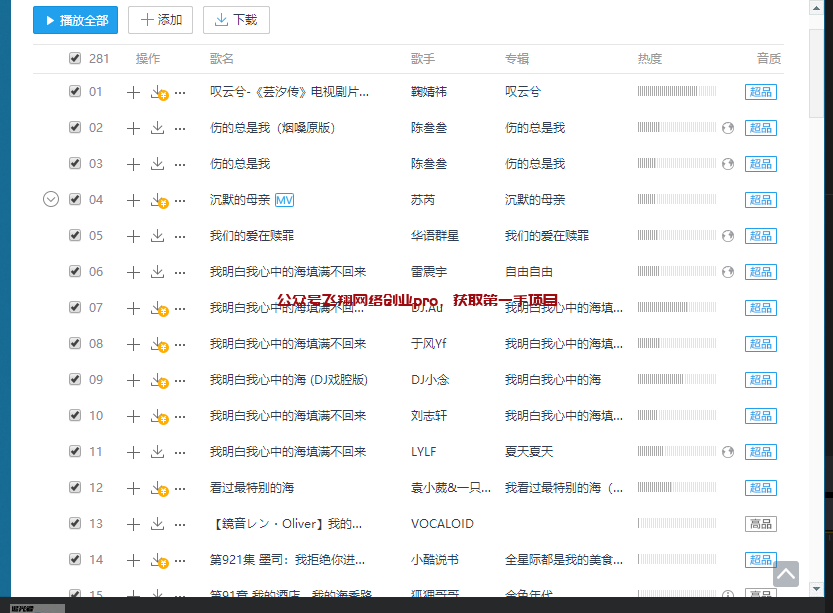 大家好,我是飞翔!今天给大家分享一个我的小助理在做的副业,起因是前两天助理在帮我剪辑迪士尼代购的那个视频,然后顺口和我说,他现在自己也在咸鱼上做一个歌曲代下载的项目,目前已经做了13天,赚了差不多1500块,并且给我看了一下他的闲鱼后台