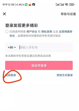 第五步:下载好了之后打开抖音,选择邮箱加密码登录,登录上去之后就是刷脸,然后绑定一个辅助手机号。随便一个手机号都行。
