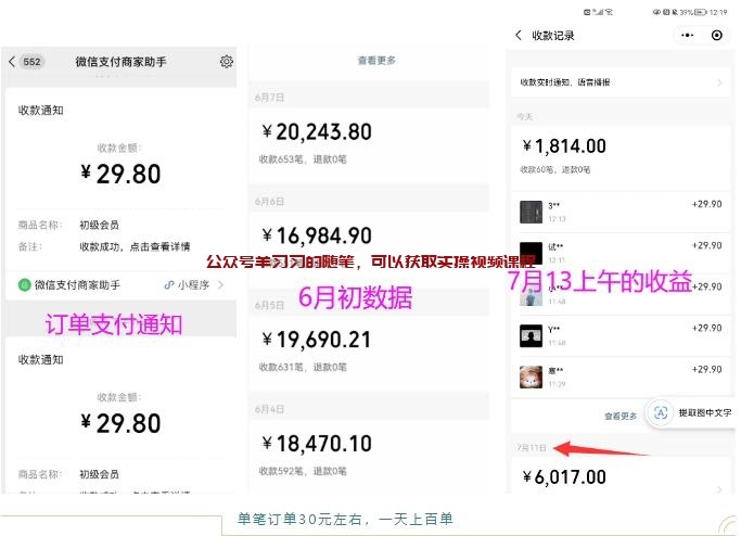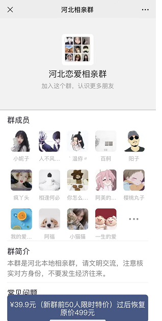 这个项目的核心就是抖音发微信相亲群的聊天记录作品,吸引用户到微信公众号,引导用户付费,进群的收费设置为29.9元,用户支付后获得进群资格