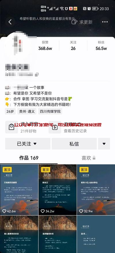 大家好,我是飞翔!最近做了个关于创业类型的文案号,用来引流,现在每天持续在发,最近也看了不少同类型的文案号,发现很多文案号做的确实不错。