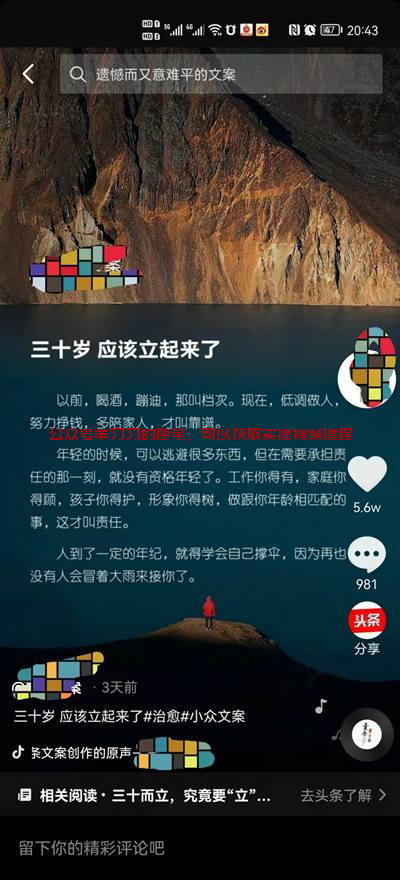 想做抖音的新手朋友,不妨试试文案号这个门槛这么低的类型吧,坚持去输出,相信可以取得不错的效果的