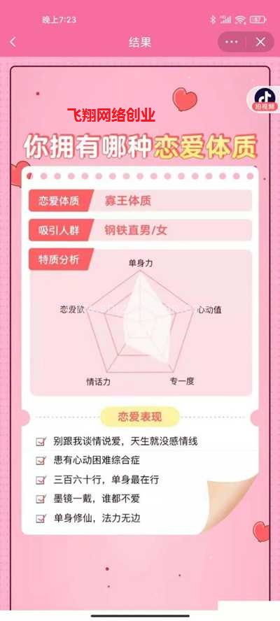 你可能看过这种视频,一些很有趣的短视频内容,然后右上角有个小程序链接,点进去,就会出现一些评测游戏。完成答案后,您需要观看 20 秒的广告。本小程序的发布者阅读此广告后,将获得一笔广告费。如果你点击下载游戏,他还会有额外的下载收入。看完广告,你会得到一个测试结果。