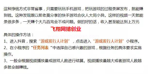 PS:飞翔之前录制过抖音小游戏赚钱的视频课程,感兴趣的小伙伴可以加飞翔的微信免费领取