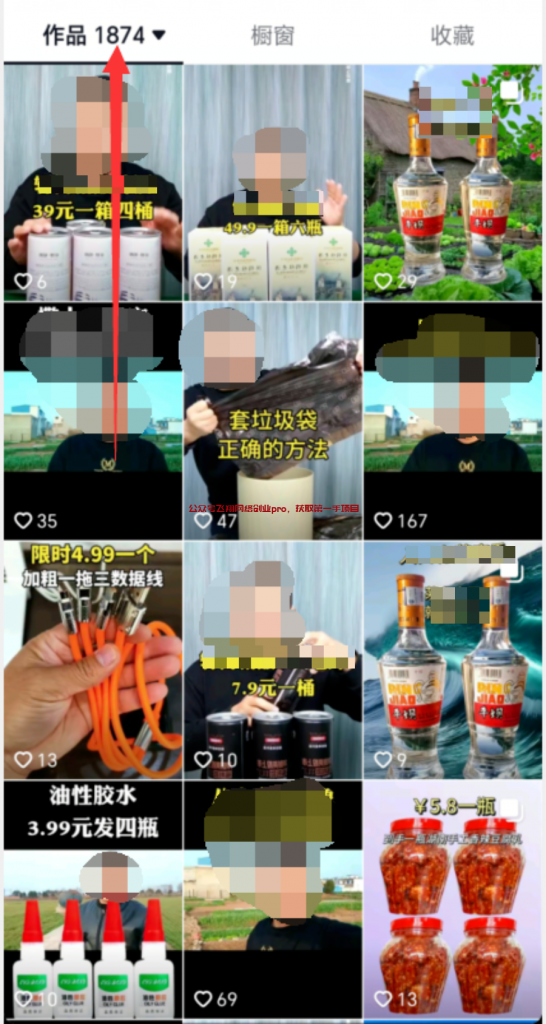 如上图所示,这哥们怼量了将近2000个视频,全都是纯带货的视频,平均下来差不多每天发5个,我分析了他发的内容,大致分为三类