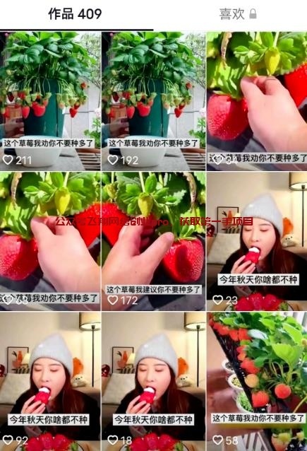 上图这个都是介绍草莓的账号,用的首屏标题都基本类似,一眼看过去,还挺有感觉的