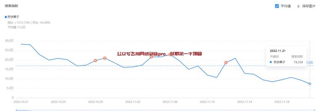 例如这个关键词:煎饼果子,在抖音上搜索量在7W+,高峰数值高达20W,真是太厉害了,事实证明现实生活中再小的一个事物都有可能是一个需求
