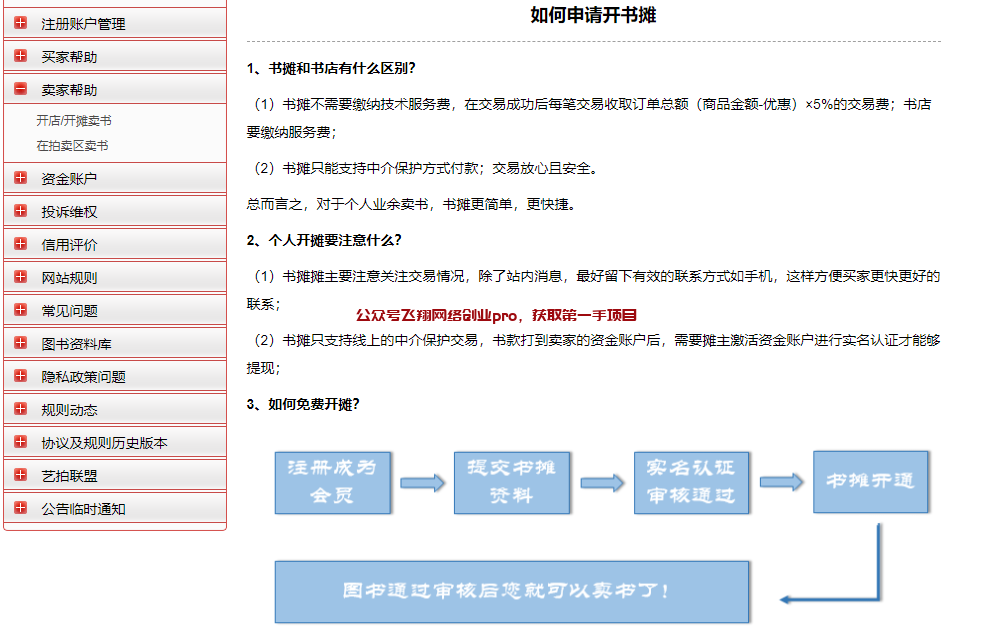 2:注册孔夫子旧书网,孔夫子网一个手机号,一个身份证,可以开通一个书摊,想做矩阵批量的朋友要准备多个物料,注册好账号之后,我们点击卖家中心,再点击免费摆书摊,这里注意一点,千万不要选择“开店”,开店的话需要营业执照还有出版资质,另外需要缴纳保证金
