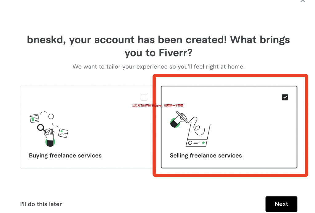 我们登陆fiverr,首先去注册账户,直接使用谷歌邮箱注册即可