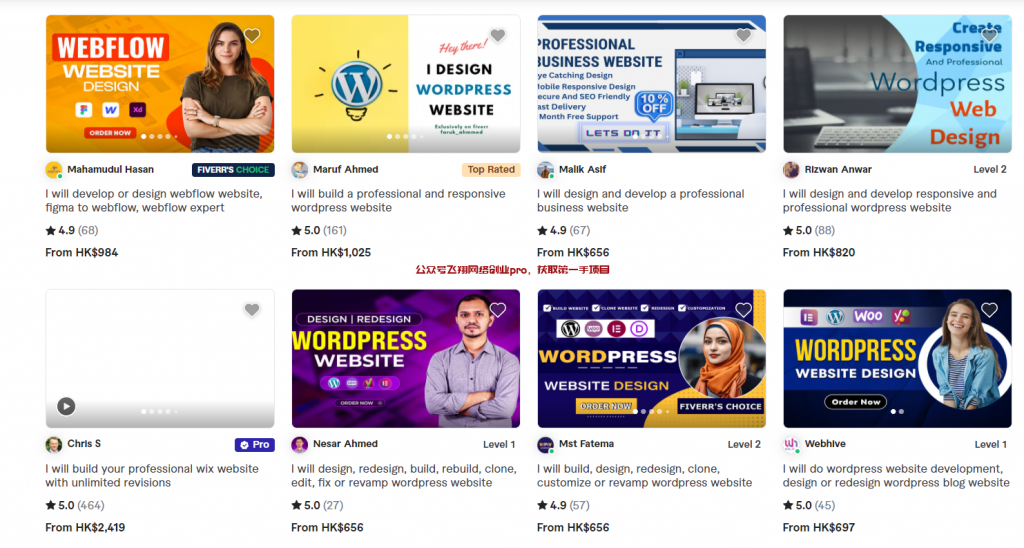 网站有大量自由职业者提供的各种各样的服务,从logo设计,文案写作,到编程设计,网络营销,配音动画等应有尽有