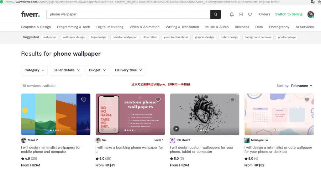 我们可以发布一个名为I will provide phone wallpaper collection的服务,价格设置为每5刀100张壁纸