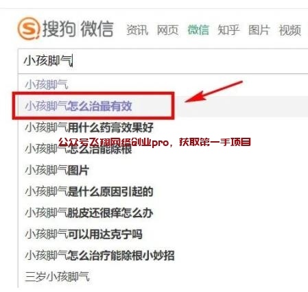 在下拉框会出来一系列下拉词,我选择“小孩脚气怎么治最有效”这个长尾词