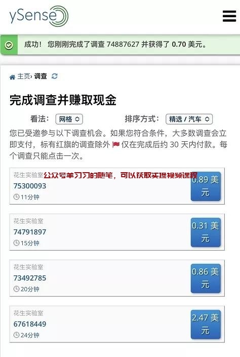 调查项目基本是属于比较稳定的副业小项目,只要愿意花时间去做,结合一些调查的小技巧,赚点生活费零花钱还是可以做到的