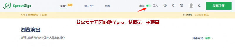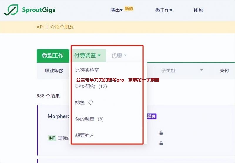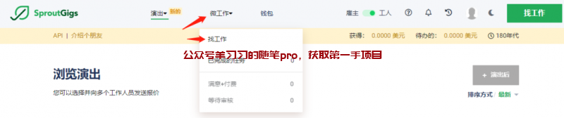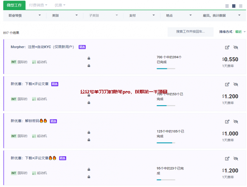 然后我们就可以在平台上接任务了,我们可以通过分类里的微工作来找到自己合适的工作