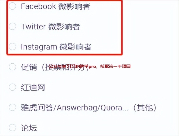 新手推荐操作关注或者点赞这类简单的任务,首先在分类列表里找到关于国外社交平台