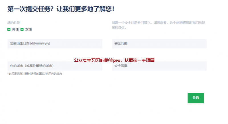 随便点击一个任务,由于我们是第一次做任务,他会弹出一个窗口,需要填写出生日期和城市,并且设置自己的一个安全问题