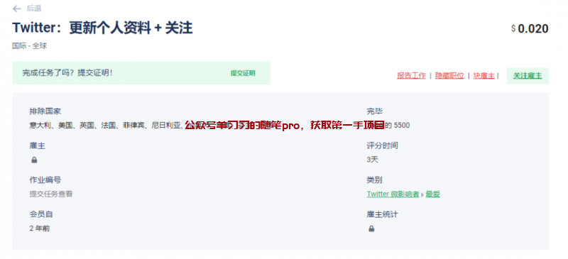 完成后,我们就看到任务的详细信息,例如这个任务不允许哪些国家操作,剩余时间和任务数量还有多少
