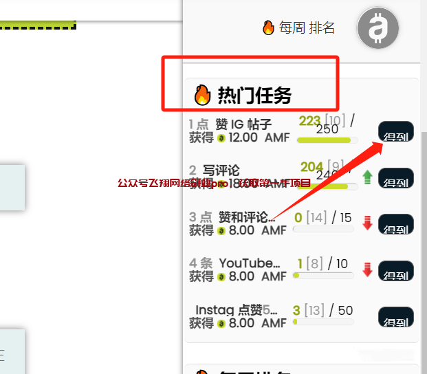 除此之外,在网站右侧还有一个入口,在这里会推荐一些热门任务,我们也可以通过这种方式去获取