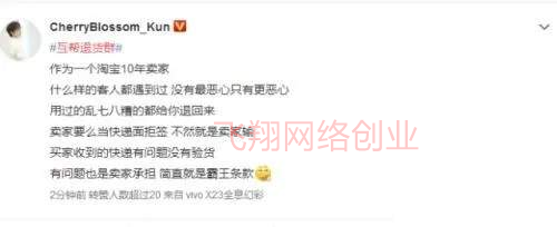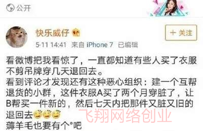 更有人爆料,还存在“互帮退货群”,比如A买了一件衣服已经穿了两个月,又脏又旧,这个时候他找群里的B重新帮她买了一件一模一样的的衣服,然后七天内申请无理由退货退款后,再把原来那件旧的寄回给商家。