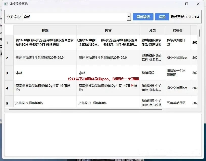 通过线报监控软件,你可以轻松挑出自己感兴趣的线报,像京东的、淘宝的、拼多多的都能筛出来。