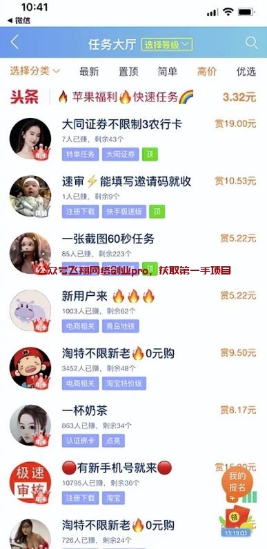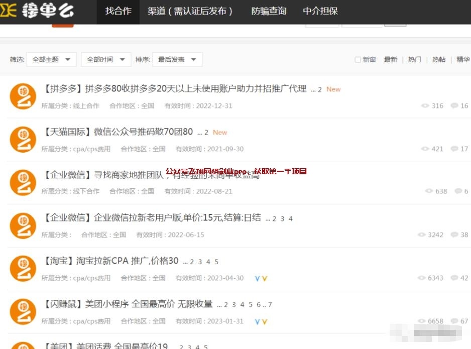 这个平台也经常会放出当下比较火的项目,很多一手项目、都会在里面发布、也能在这里面找到渠道