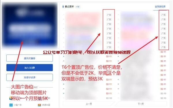 接下来我给大家看下这个网站的所有广告位,大家可以大概计算一下