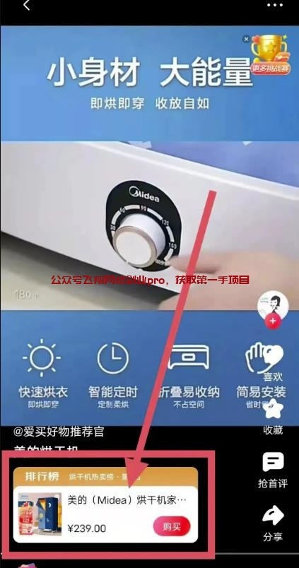 视频左下角直接有商品的链接,点击链接即可跳转到京东商品的主页,用户下单后,我们就可以获取商品佣金了