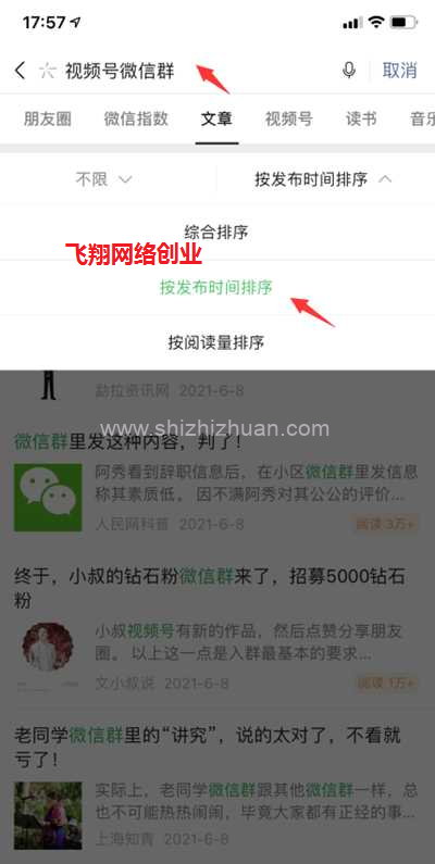 如下图,搜索“视频号微信群”选择文章,选择按时间发布,就能找到最新的微信群,因为微信群有时效性,时间久了就失效。也可以通过关注公众号到菜单栏查找,很多都有微信群的。