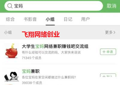 下面以宝妈群群为案例,打开豆瓣,搜索关键词(宝妈,母婴,育儿)所在的小组,寻找上面关键词的字帖。查看留言区,添加微信。他们就会拉你进群。