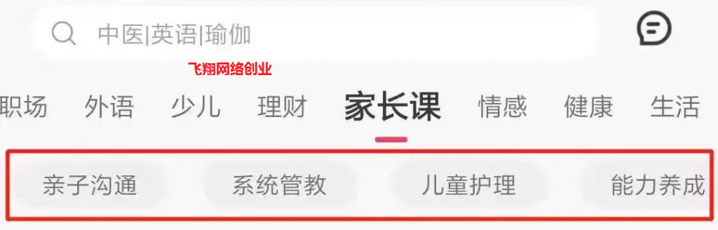 这是我今天在千聊上看到的家长课截图,里面也有各种各样的分类,比如亲子交流,系统训练,儿童护理等等。