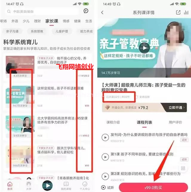 就这些课程的收听率而言,这样的课程的确很受欢迎。比如说有一门课,总共99元33节课,平均下来每节课3元,是很多家长可以接受的范围,100元的价格相对较低。