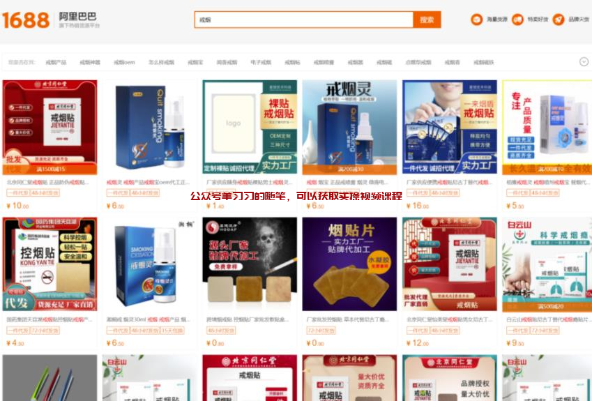 首先咱们需要解决货源问题,货源的话先去1688看看,1688直接搜索关键词戒烟