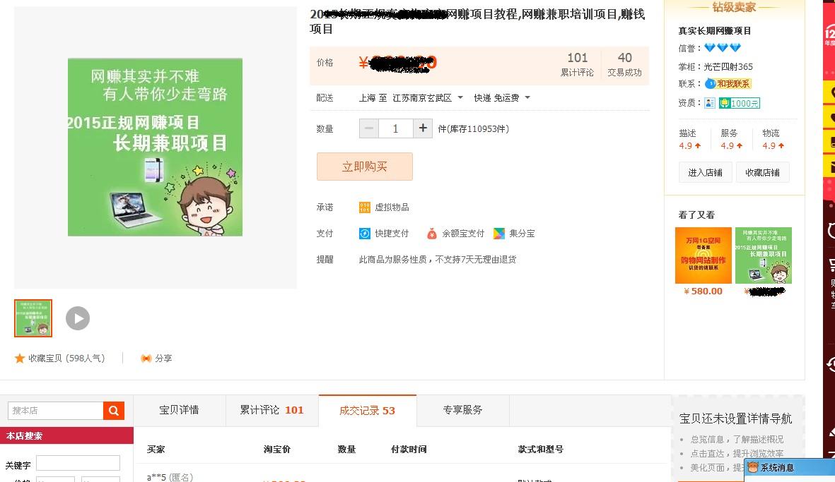 因为淘宝系统近期经常会排查下架网赚类产品(网赚类产品纠纷较多,所以系统经常无故随机下架产品),飞翔之前就录制了一些销量视频,证明我们的销量,包括培训时间,店铺创建时间,现在很多做培训的,自己入行可能才2,3个月,就敢教别人做项目,胆子也有些太大了,很可能会误人子弟,耽误别人的时间精力
